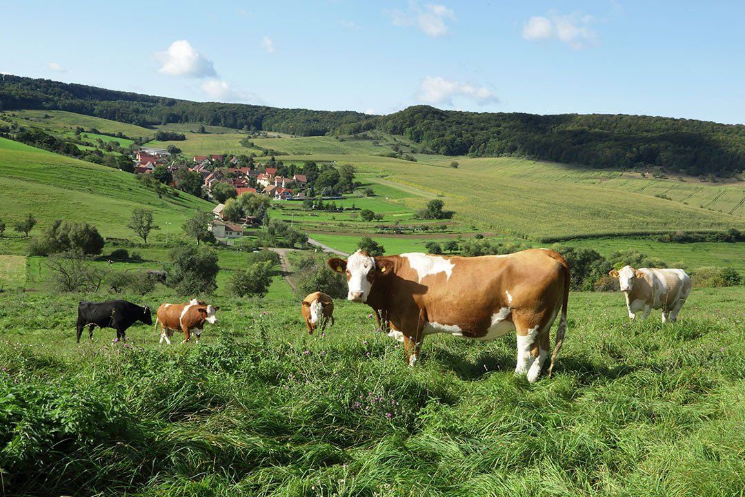 Eine maschinelle Pflege steiler Hanglagen ist häufig unmöglich, daher erfolgt hier die schonende Pflege durch Beweidung. Die Offenhaltung unserer umfangreichen Weideflächen ist ein wichtiger Beitrag zur Erhaltung der vielfältigen Kulturlandschaft. Die Beweidung durch unsere Mutterkühe hat einen positiven Nebeneffekt: Gesundes, regionales und traditionell erzeugtes Rindfleisch.
